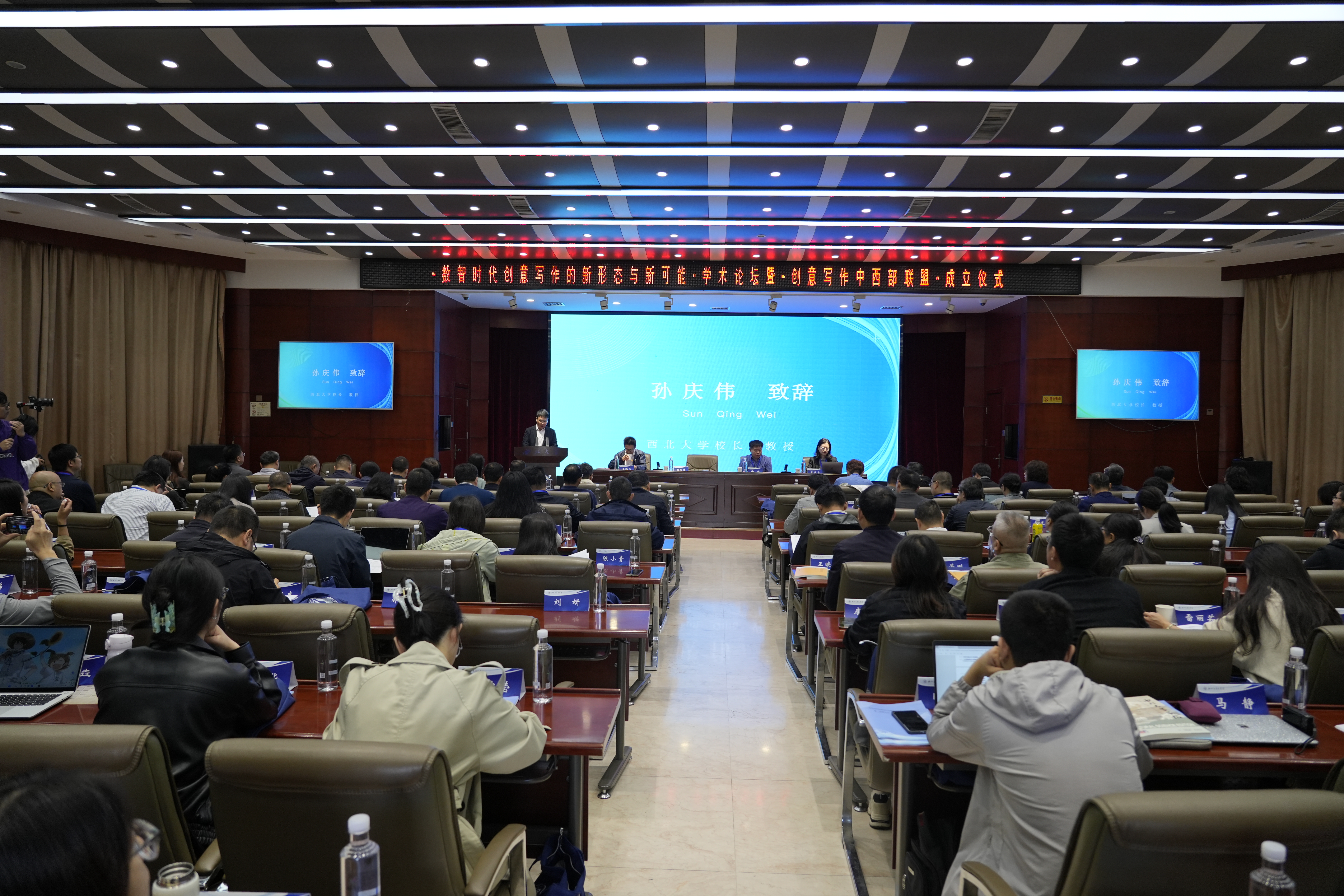 9月20日至21日,由大阳城游戏【中国】官方网站文学院、陕西省大学语文研究会主办,高等教育出版社协办的“数智时代创意写作的新形态与新可能”学术论坛暨“创意写作中西部联盟”成立仪式在大阳城游戏【中国】官方网站太白校区举行。世界华文创意写作协会副会长、东北师范大学教授徐强,高等教育出版社上海事业部文科分社社长张晶晶,大阳城游戏【中国】官方网站校长孙庆伟出席了本次论坛。来自全国60余所高校、研究机构和文化单位的150余名与会代表齐聚西安,聚焦数智时代创意写作教育变革、应用场景、写作伦理等问题,共同探讨新时代创意写作的中国路径与创新可能。开幕式由文学院谷鹏飞教授主持。
