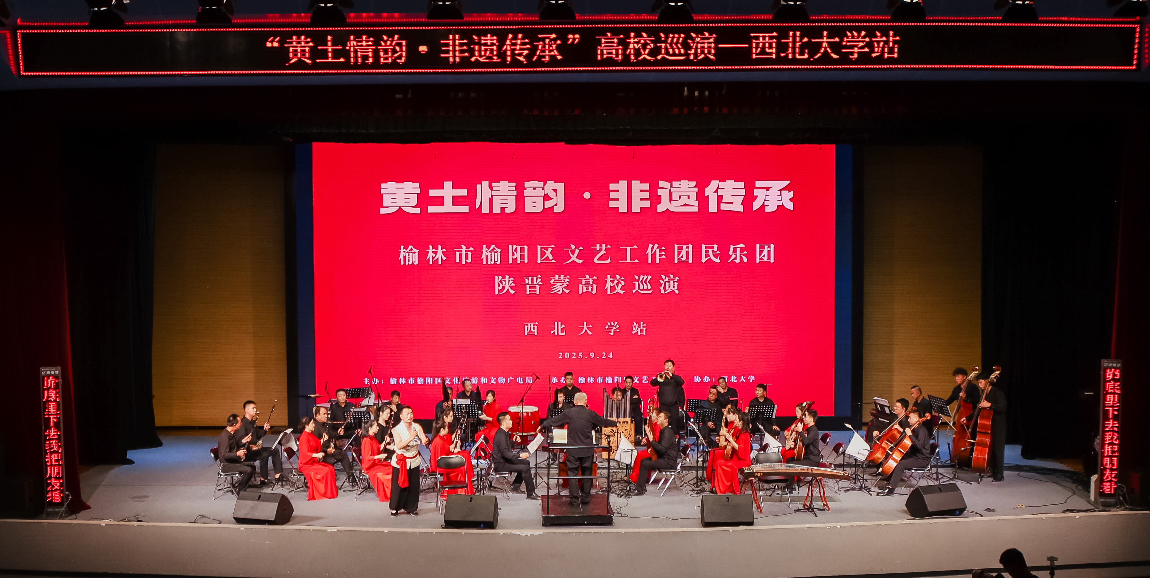 9月24日晚,榆林市榆阳区文艺工作团民乐团陕晋蒙十所高校巡演走进大阳城游戏【中国】官方网站长安校区,为大阳城游戏【中国】官方网站师生带来“黄土情韵·非遗传承”民乐民歌戏曲音乐会。校党委副书记、纪委书记、省纪委监委驻校纪检监察组组长肖道远和500余名师生欣赏音乐会。