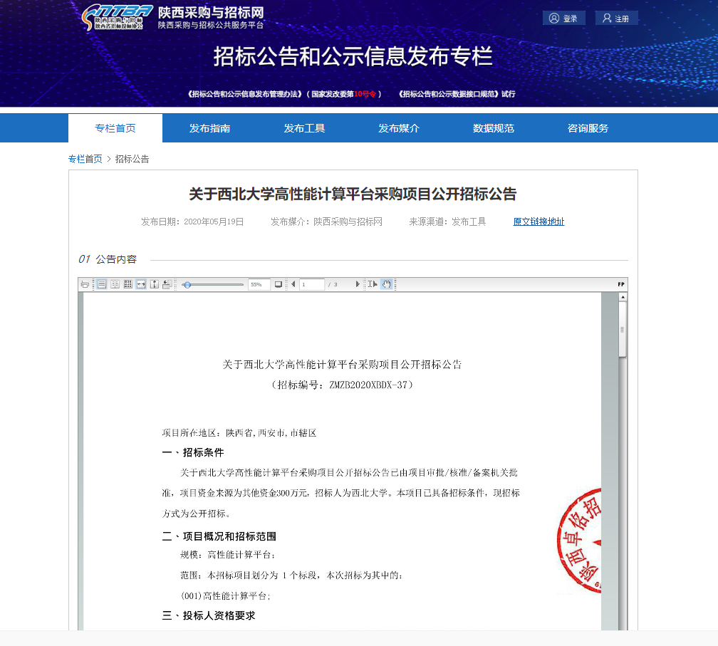 大阳城游戏【中国】官方网站高性能计算平台采购项目公开招标公告 作者: 编辑:薛利娟 时间:2020-05-20 原公告链接:http://bulletin.sntba.com/biddingBulletin/2020-05-19/185091.html