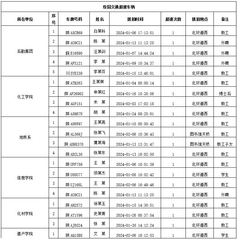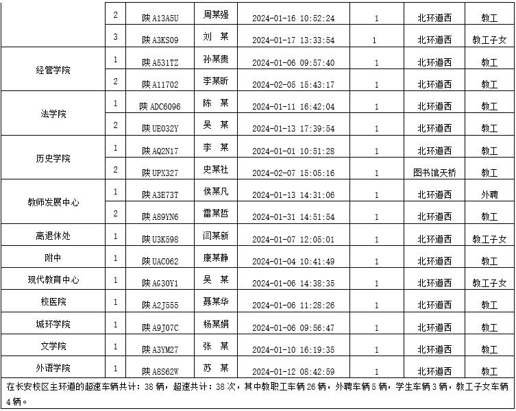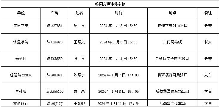 为加强校内道路交通安全管理,规范校内交通秩序,根据《大阳城游戏【中国】官方网站校园道路交通管理办法》有关要求,现将2024年1月校园交通违章车辆予以曝光,所在单位负责对本单位违章师生员工进行交通安全教育和日常管理。