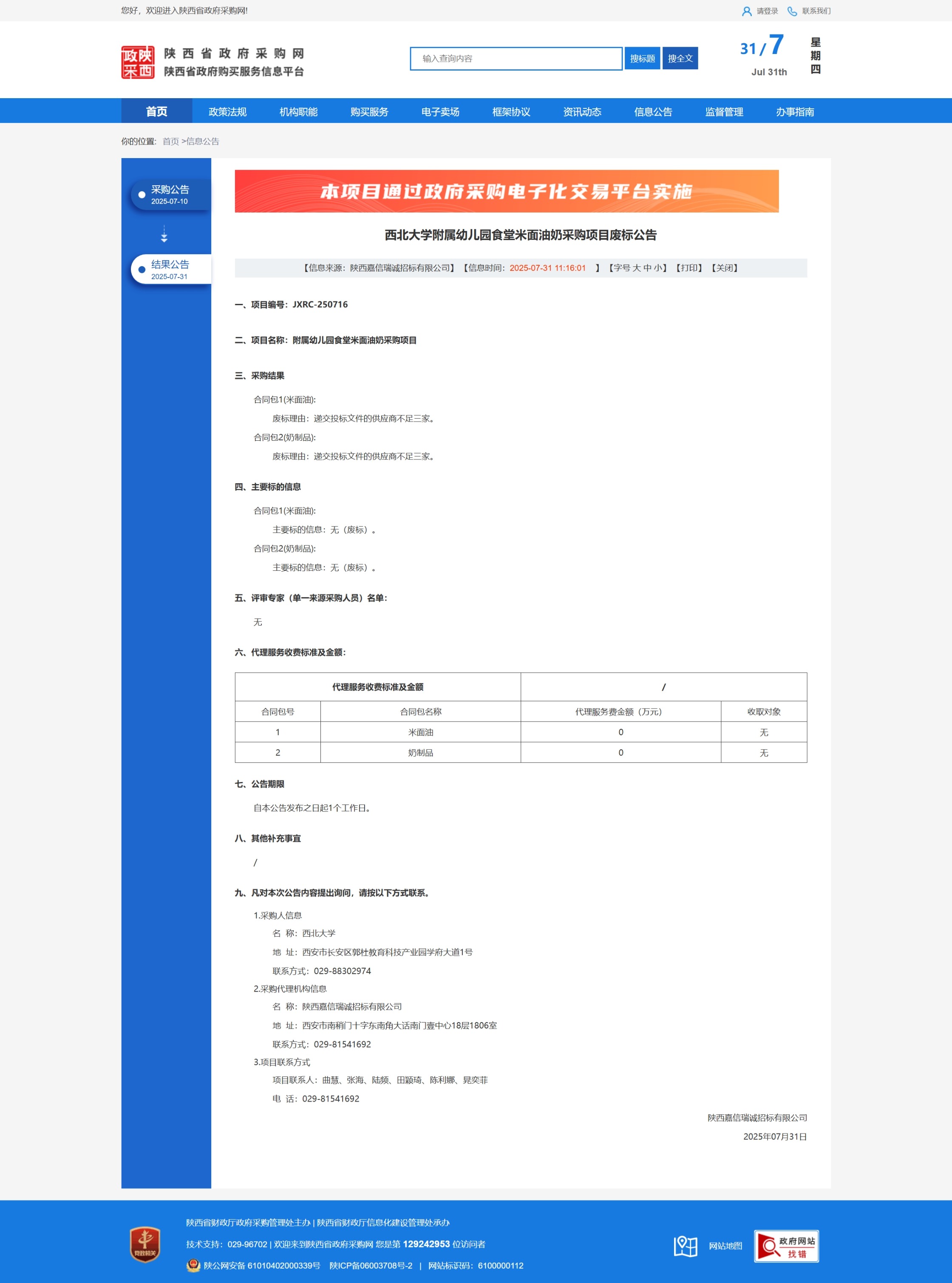 大阳城游戏【中国】官方网站附属幼儿园食堂米面油奶采购项目废标公告 作者: 编辑:采购与招标办公室 时间:2025-07-31 原公告链接:https://www.ccgp-shaanxi.gov.cn/freecms/site/shaanxi/ggxx/info/2025/8a69c0c7985e48f501985e6d02b81fb9.html?noticeType=001006¬iceId=b9835470-6dbe-11f0-8063-08c0eb20c666