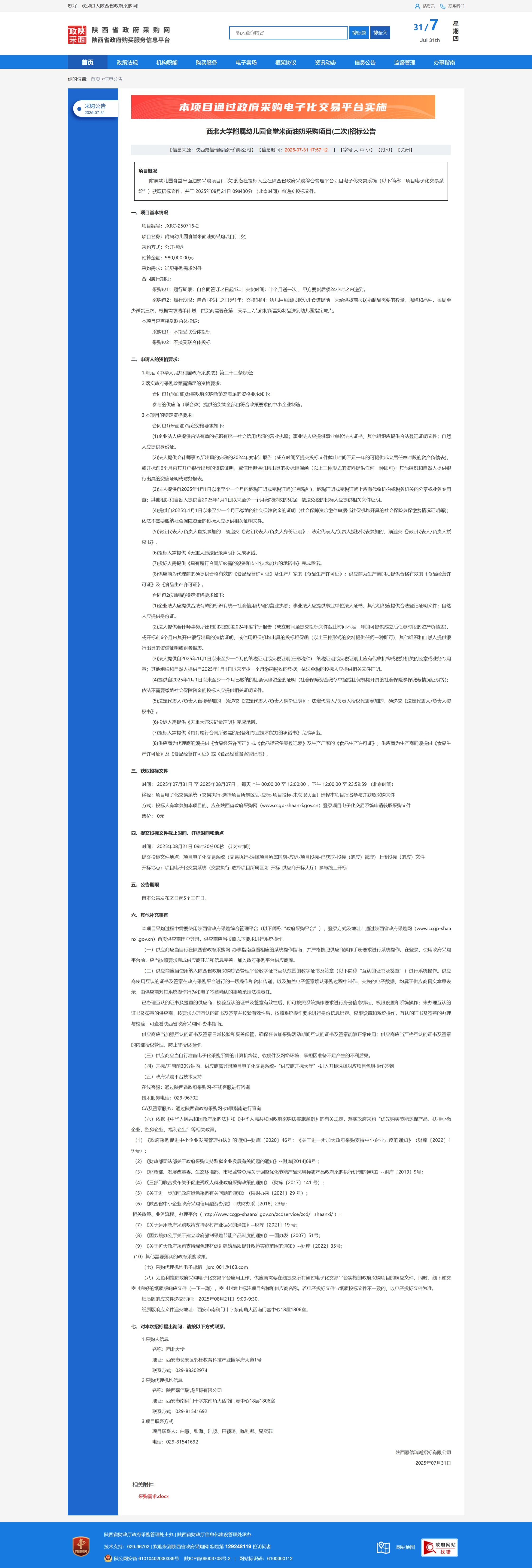 大阳城游戏【中国】官方网站附属幼儿园食堂米面油奶采购项目(二次)招标公告 作者: 编辑:采购与招标办公室 时间:2025-07-31 原公告链接:https://www.ccgp-shaanxi.gov.cn/freecms/site/shaanxi/ggxx/info/2025/8a69c4d4985e3e5601985fe2fab2305e.html?noticeType=001011¬iceId=c51d4796-6df6-11f0-8063-08c0eb20c666