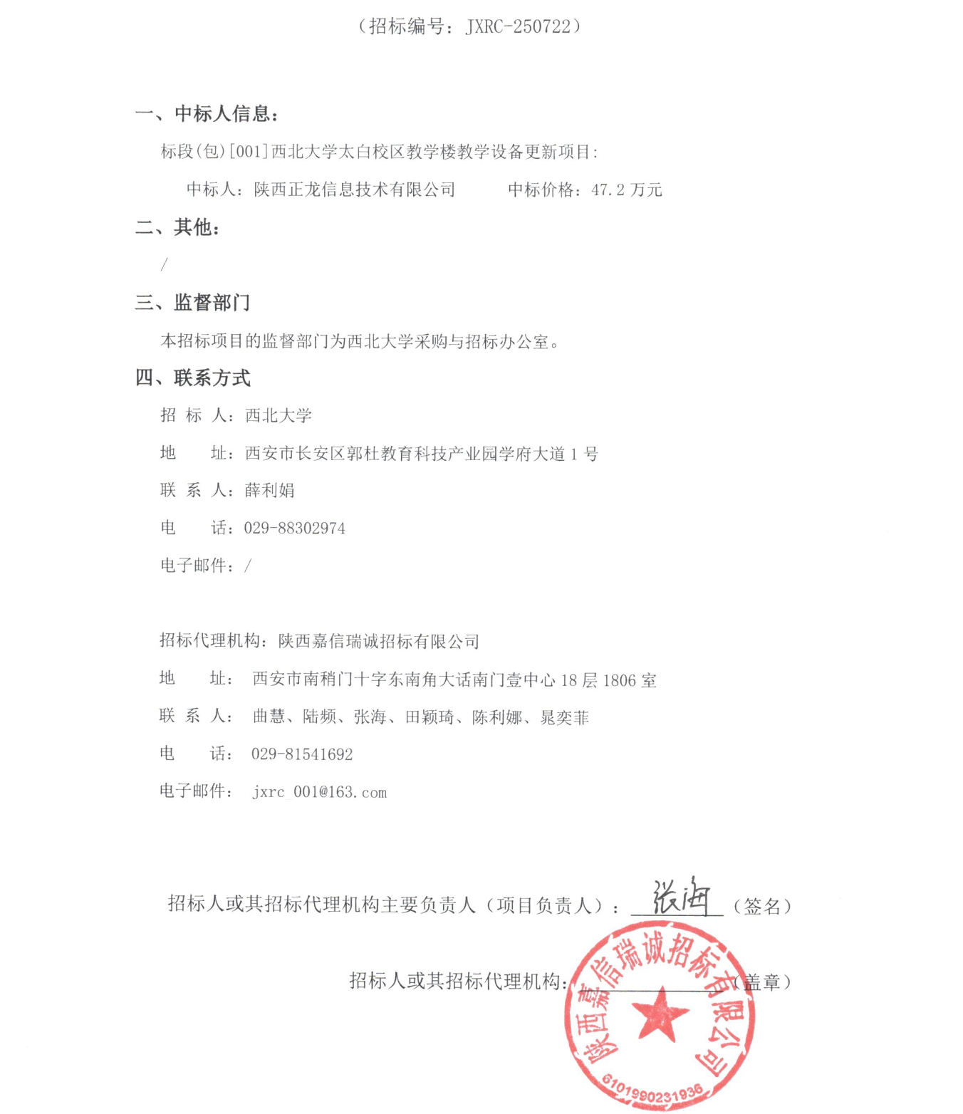 大阳城游戏【中国】官方网站太白校区教学楼教学设备更新项目成交结果公告
