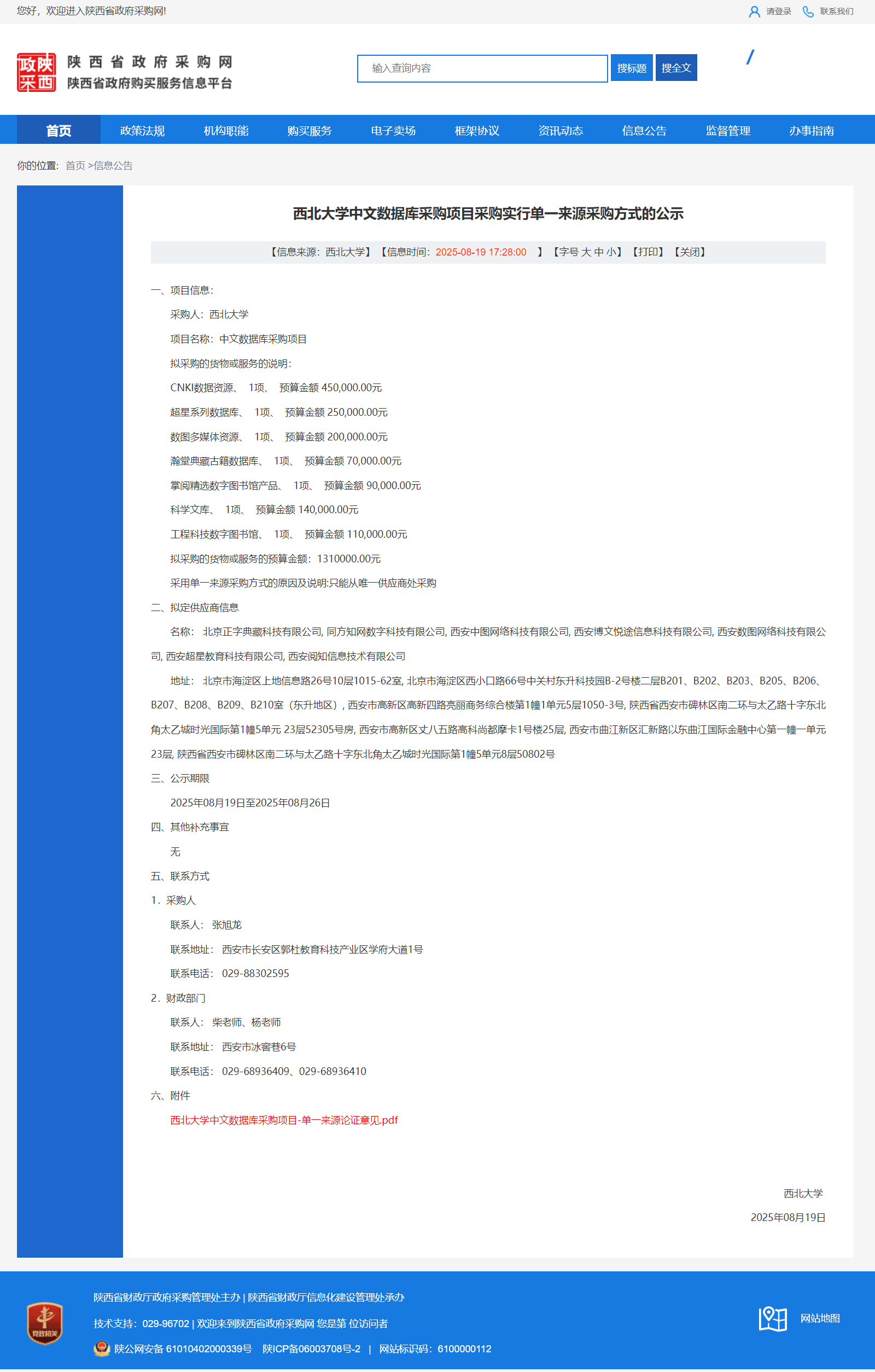 大阳城游戏【中国】官方网站中文数据库采购项目采购实行单一来源采购方式的公示