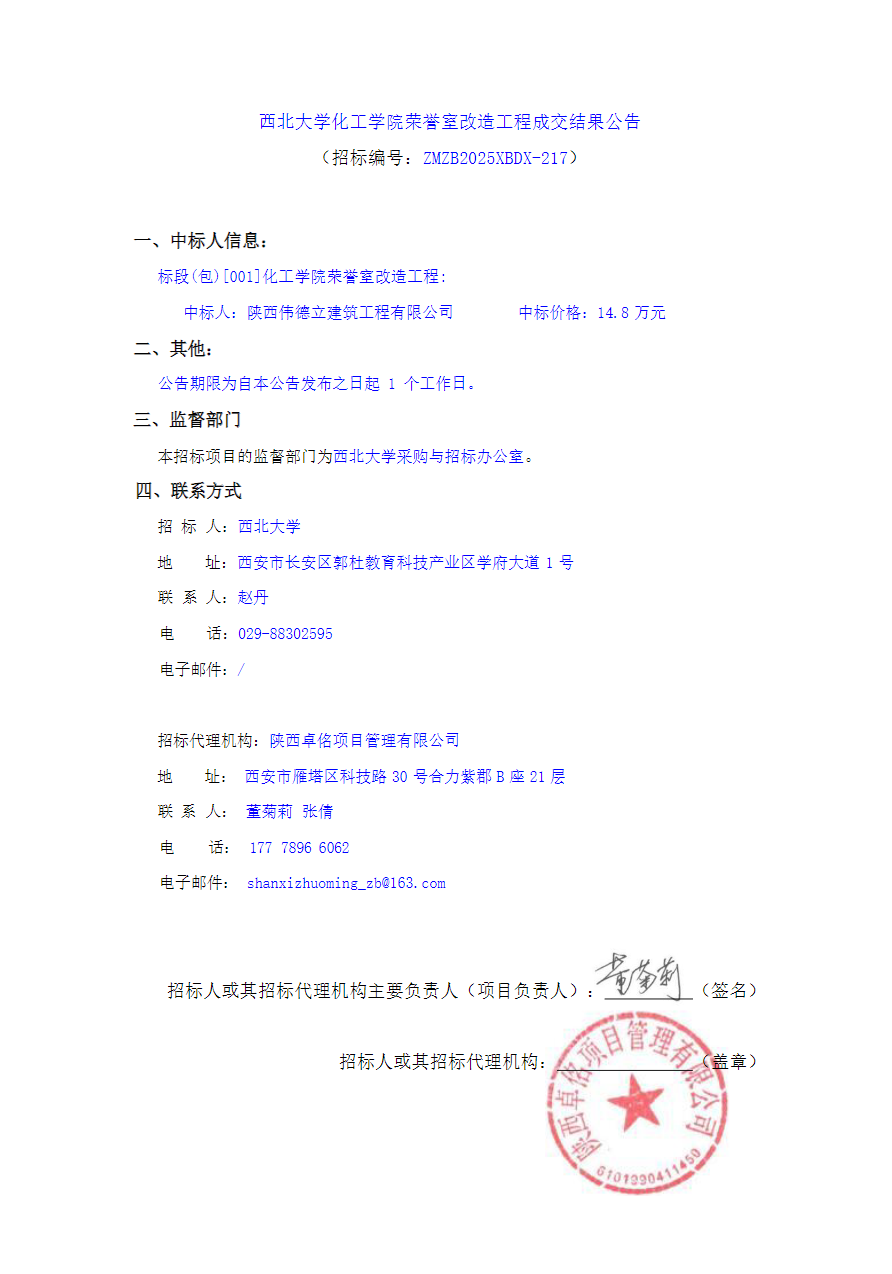 大阳城游戏【中国】官方网站化工学院荣誉室改造工程成交结果公告