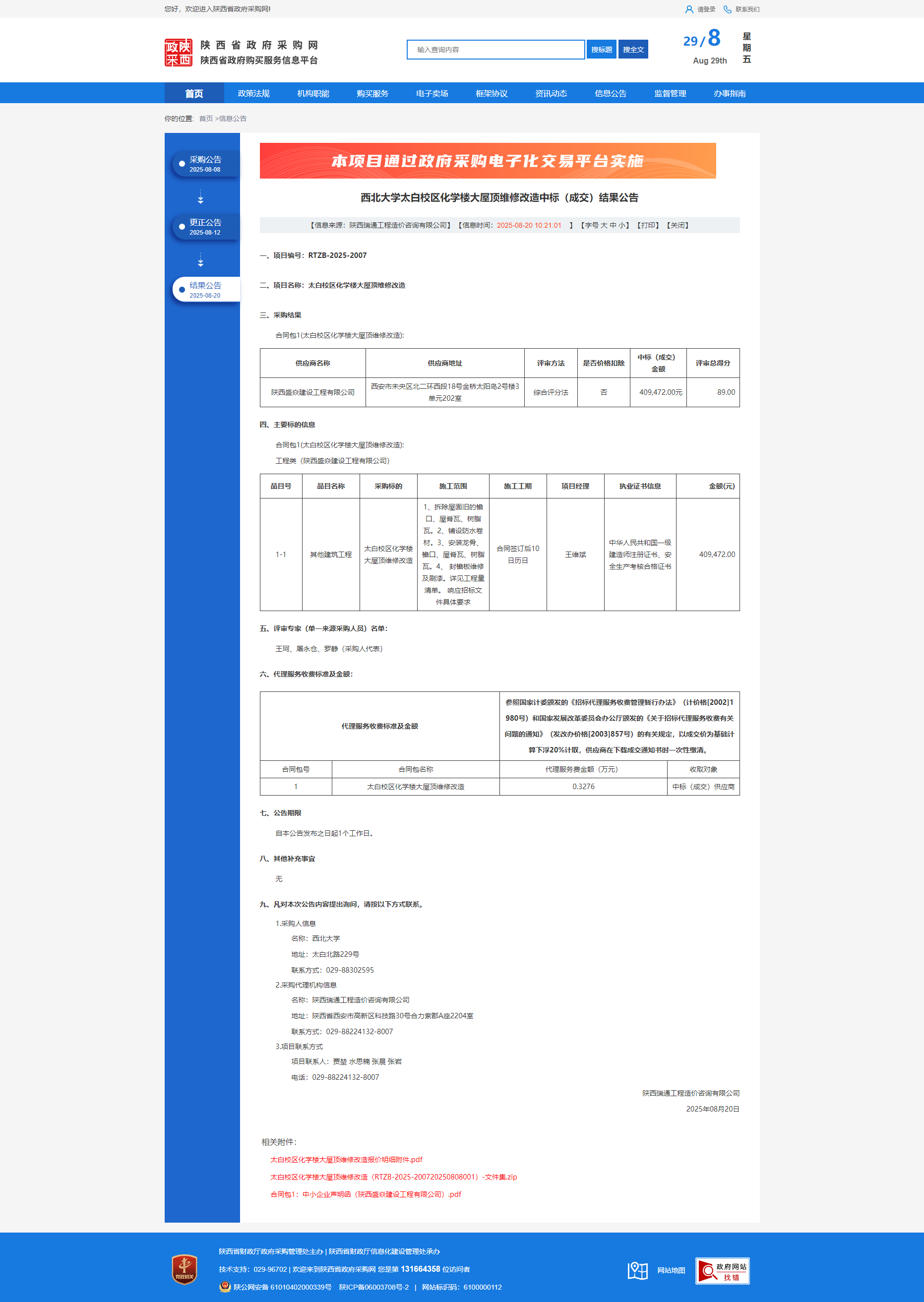 大阳城游戏【中国】官方网站太白校区化学楼大屋顶维修改造中标(成交)结果公告