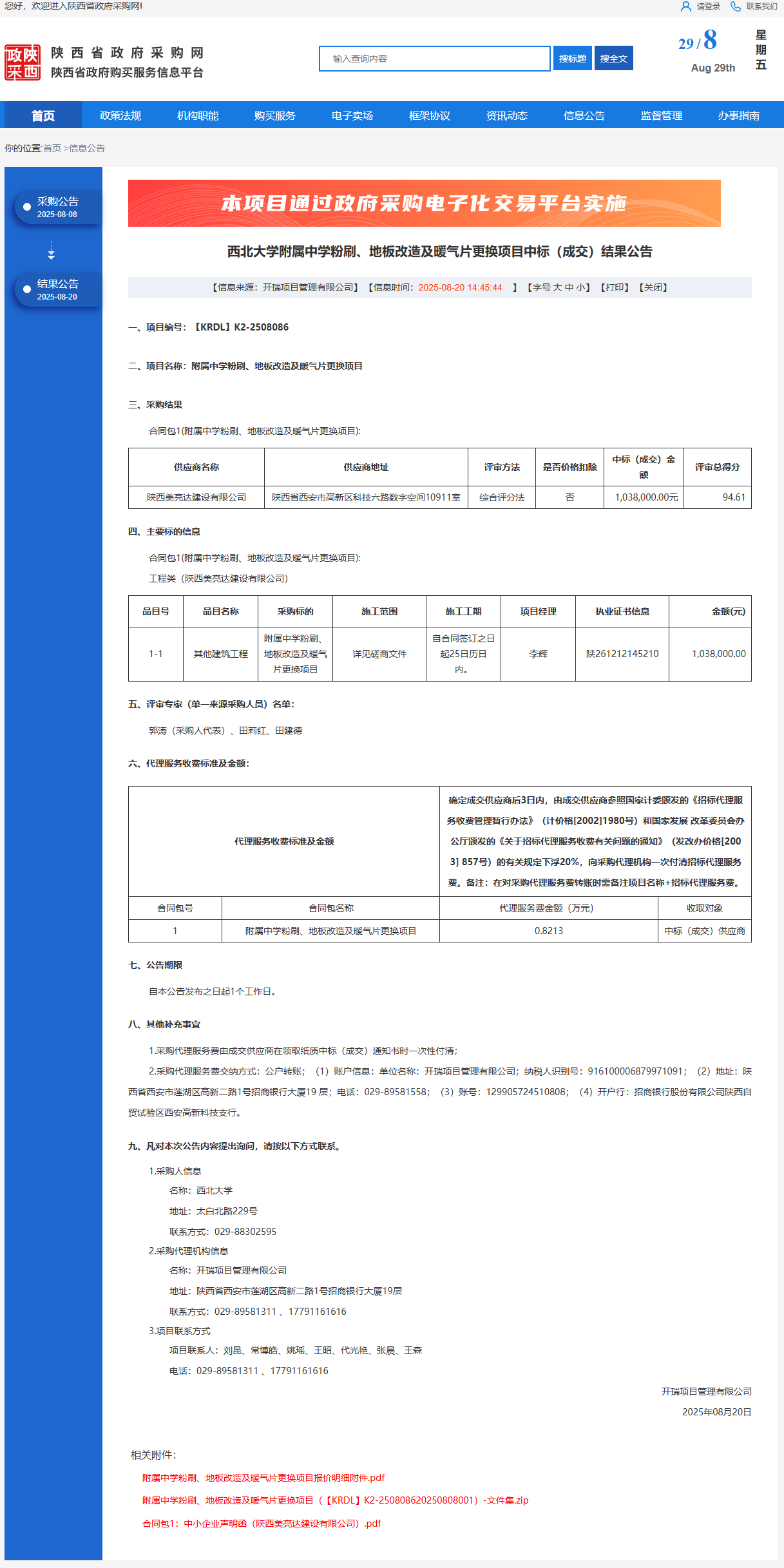 大阳城游戏【中国】官方网站附属中学粉刷、地板改造及暖气片更换项目中标(成交)结果公告