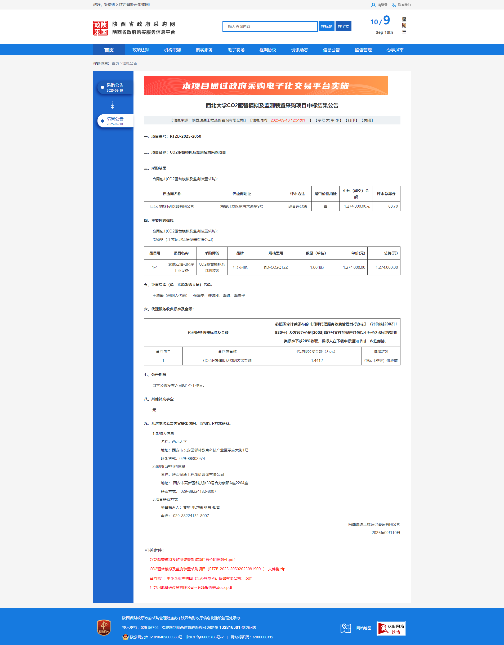 大阳城游戏【中国】官方网站CO2驱替模拟及监测装置采购项目中标结果公告