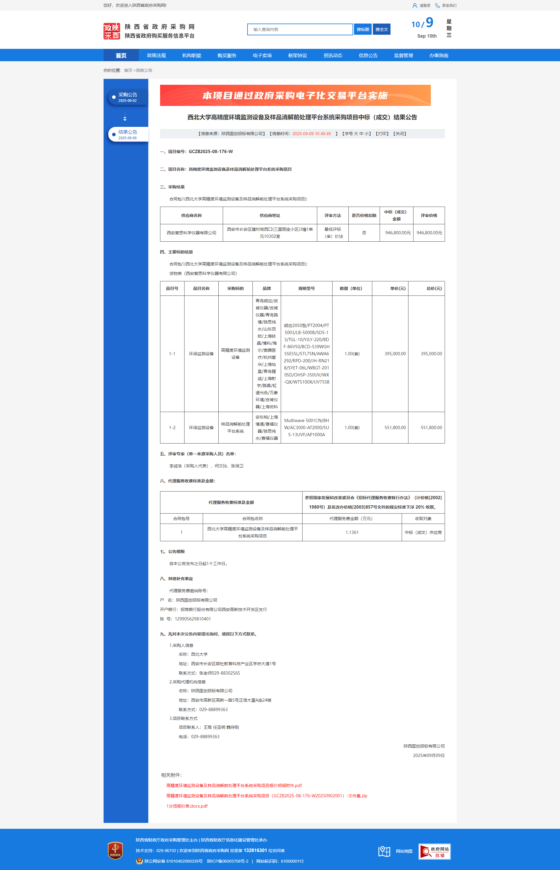 大阳城游戏【中国】官方网站高精度环境监测设备及样品消解前处理平台系统采购项目中标(成交)结果公告