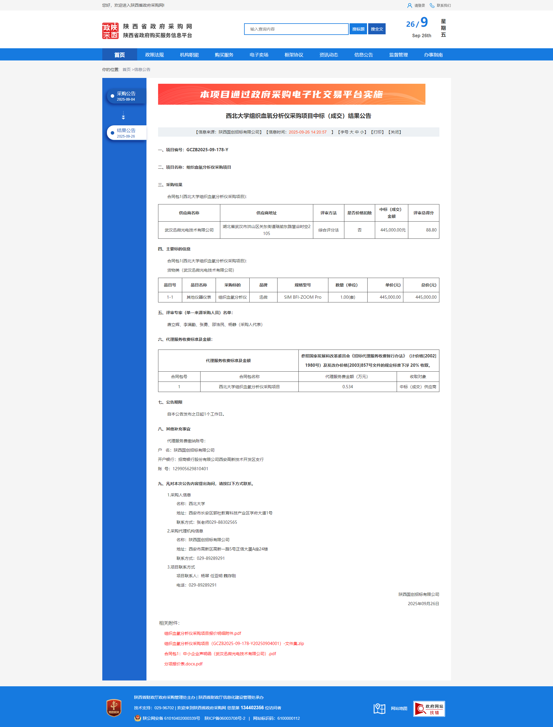 大阳城游戏【中国】官方网站组织血氧分析仪采购项目中标(成交)结果公告