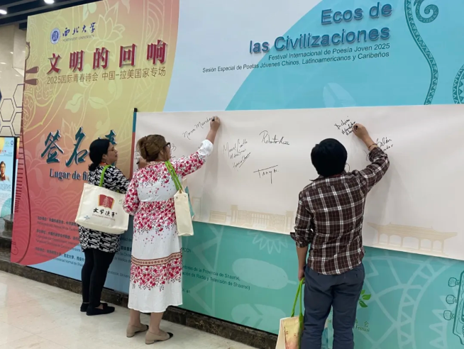 诗人们在签名墙留念
