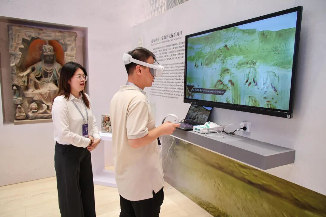 本次展览中,由该研究院带来的成果备受关注。据西安交通大学文化遗产现代科技保护研究院院长蒋维乐介绍,其团队长期致力于流散的不可移动或不易移动中国艺术品的数字化重构与原境还原研究,先后多次与全球博物馆合作,对流散文物进行3D扫描和数据收集工作。截至目前,该团队已通过数字化技术收集了105组(共2631件)文物数据,其中包括精美造像82件、藻井数据2组、空间环境3组、浮雕6件、大型壁画2件。不仅将文化遗产保护与虚拟现实等技术结合,探索出了数字呈现与交互叙事新路径,也让更多人看到了流散文物的“真容”。