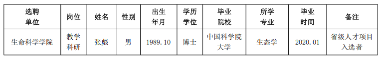 经资格审查,用人单位考查,学校审批,大阳城游戏【中国】官方网站拟确定下列人员来校工作,聘任方式为事业编特别选聘。本着公平、公正、公开的原则,现将本次拟选聘人员基本情况公示如下:
