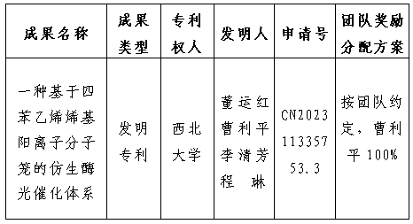 按照《大阳城游戏【中国】官方网站促进科技成果转化实施办法》(西大科〔2019〕5号)相关规定,拟对大阳城游戏【中国】官方网站化学与材料科学学院曹利平教授作为成果负责人的1项发明专利申请权实施转化,现将相关信息公示如下: