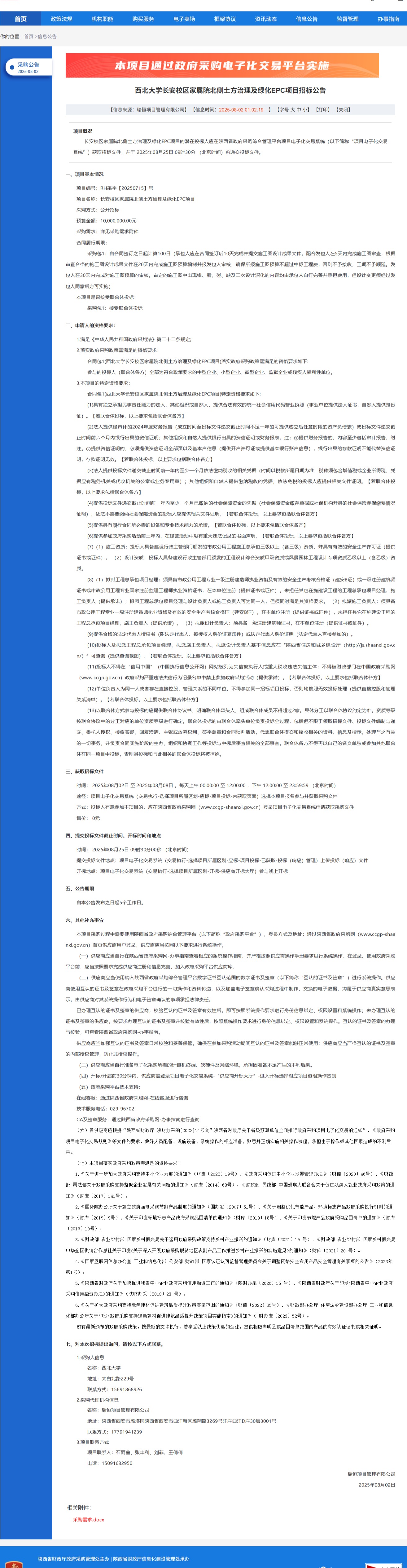 大阳城游戏【中国】官方网站长安校区家属院北侧土方治理及绿化EPC项目招标公告 作者: 编辑:党丹珩 时间:2025-08-02 公告地址:http://www.ccgp-shaanxi.gov.cn/freecms/site/shaanxi/ggxx/info/2025/8a69c7f19860ef060198668ebf817f37.html?noticeType=001011¬iceId=537d203b-6efb-11f0-8063-08c0eb20c666