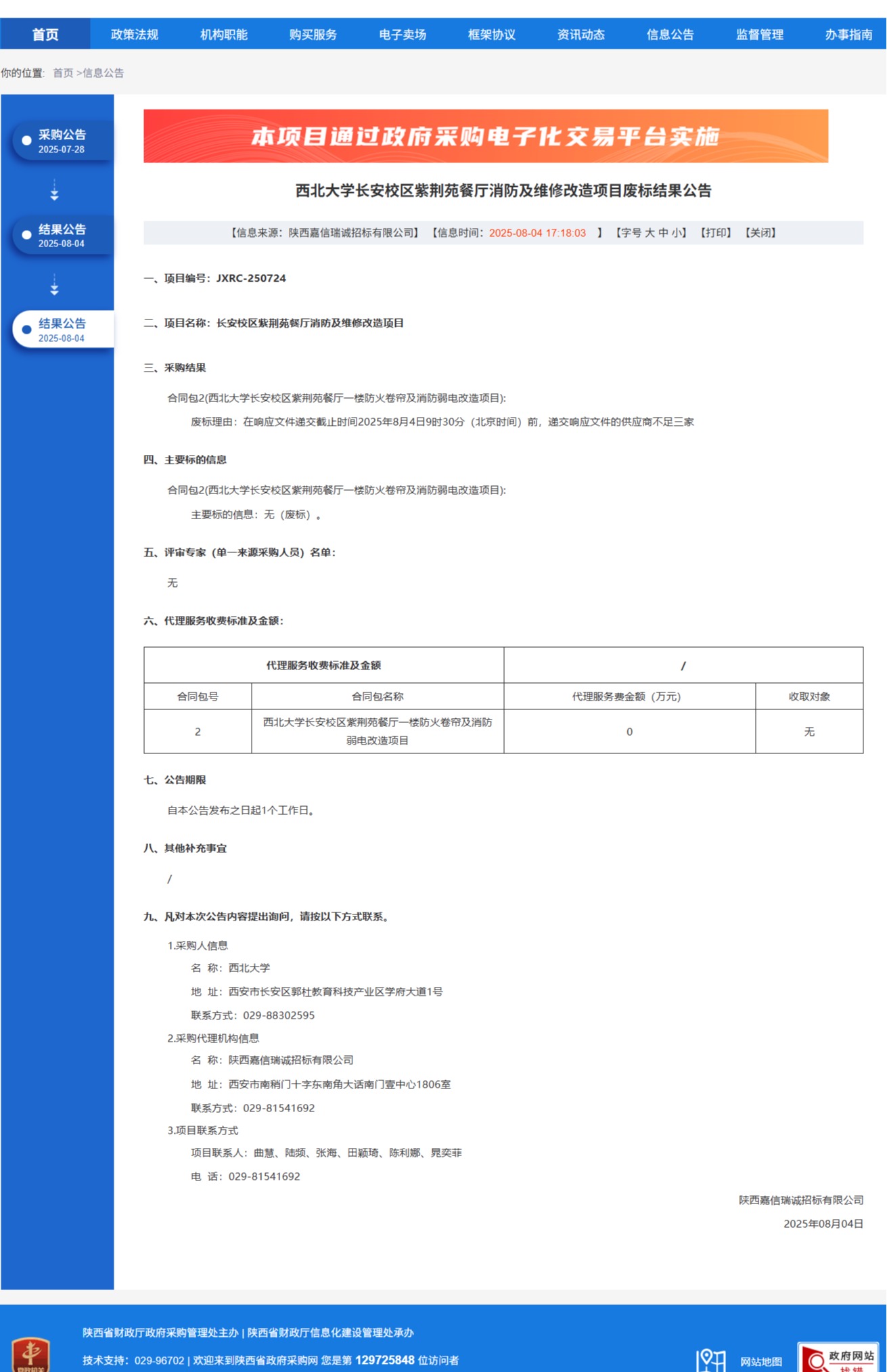 大阳城游戏【中国】官方网站长安校区紫荆苑餐厅消防及维修改造项目废标结果公告 作者: 编辑:党丹珩 时间:2025-08-04 公告地址:http://www.ccgp-shaanxi.gov.cn/freecms/site/shaanxi/ggxx/info/2025/8a69c0c89860f6020198742efac05b51.html?noticeType=001006¬iceId=f838eaa2-7115-11f0-8063-08c0eb20c666