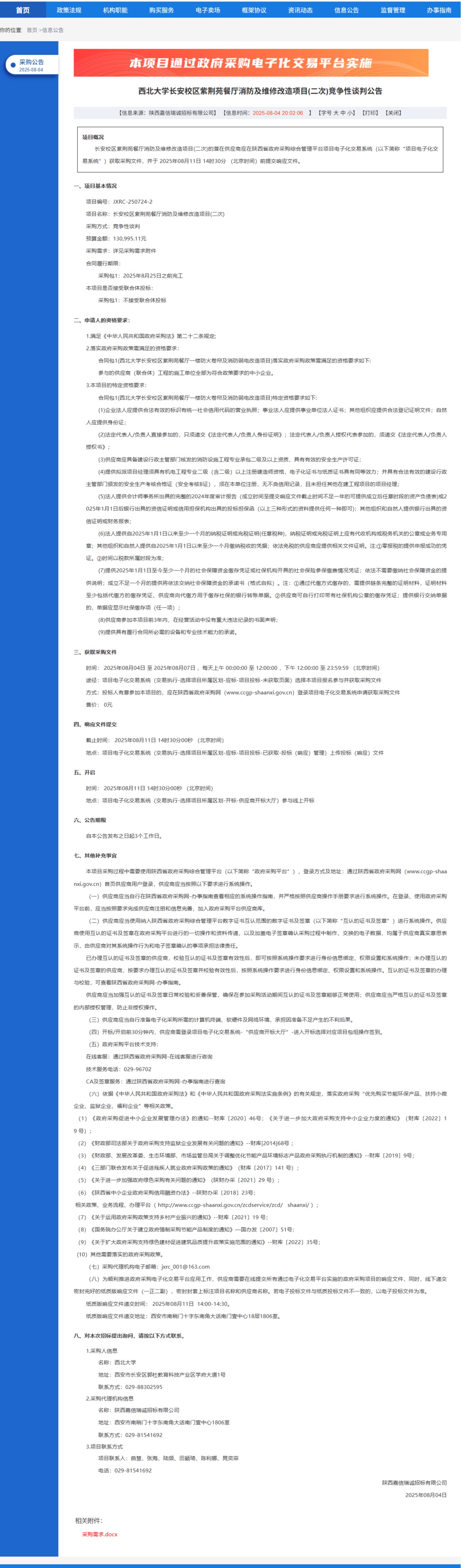 大阳城游戏【中国】官方网站长安校区紫荆苑餐厅消防及维修改造项目(二次)竞争性谈判公告 作者: 编辑:党丹珩 时间:2025-08-04 公告地址:https://www.ccgp-shaanxi.gov.cn/freecms/site/shaanxi/ggxx/info/2025/8a69c1e29860ef6f019874c6b4a22713.html?noticeType=001013¬iceId=e37c65dc-712c-11f0-8063-08c0eb20c666