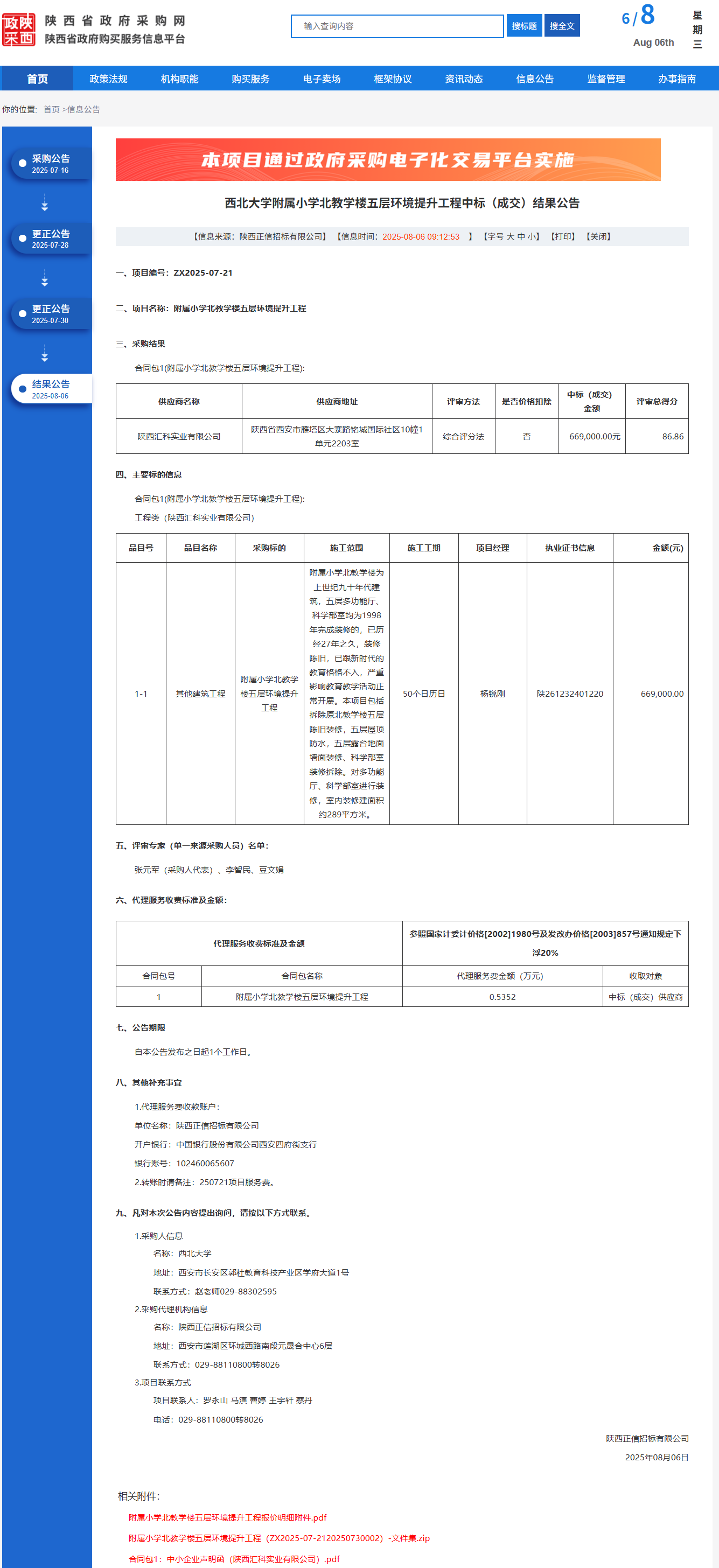 大阳城游戏【中国】官方网站附属小学北教学楼五层环境提升工程中标(成交)结果公告 作者: 编辑:党丹珩 时间:2025-08-06 公告地址:https://www.ccgp-shaanxi.gov.cn/freecms/site/shaanxi/ggxx/info/2025/8a69c1e29860ef6f01987cdf292f438d.html?noticeType=001026¬iceId=870e8f84-7264-11f0-8063-08c0eb20c666